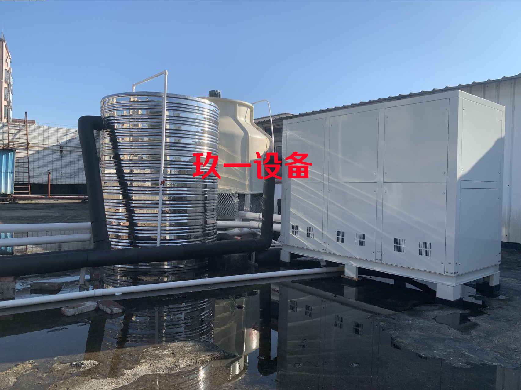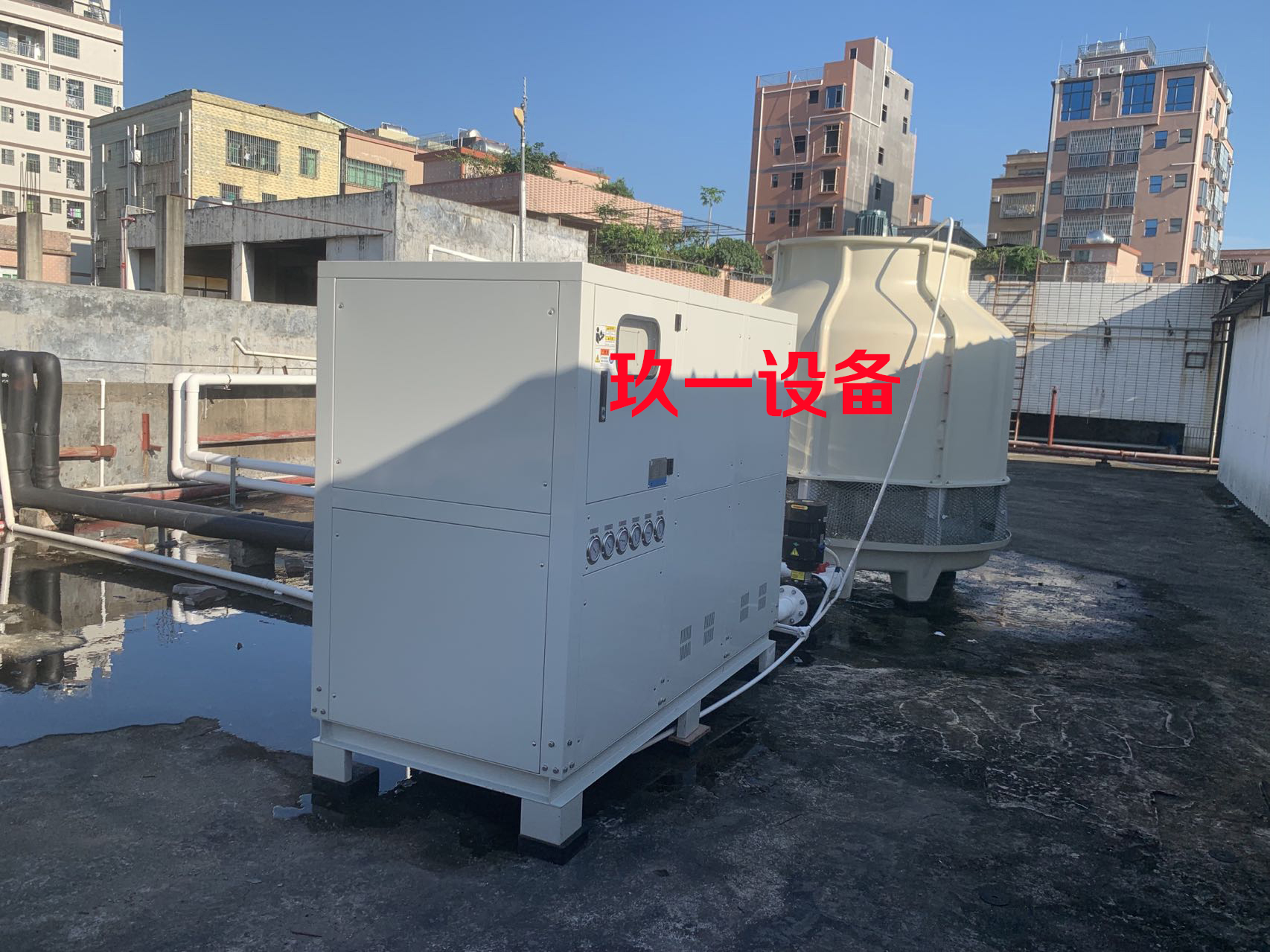 近期剛好為某公司做了一套車(chē)間降溫用水冷式冷水機(jī)組,選用的是30P水冷冷水機(jī)。