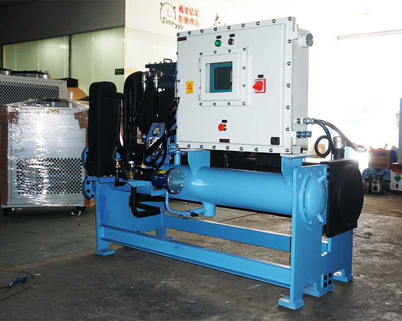 由于冷水機組有時候經(jīng)常會用于一些有易燃粉塵,氣體或者化工領(lǐng)域。此時冷水機為了安全的需要在電控、電機、風(fēng)機等地方做防爆處理。